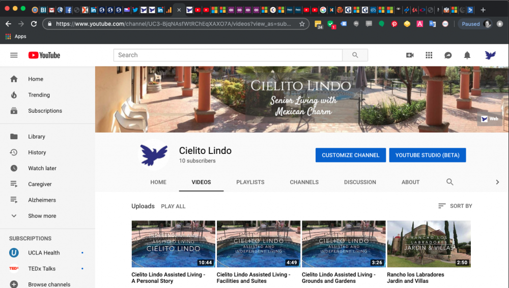 Here is our YouTube Channel. This is where we have lots of videos about Cielito Lindo and Rancho Los Labradores. We also have 1,600+ other senior care and expat in Mexico videos: YouTube