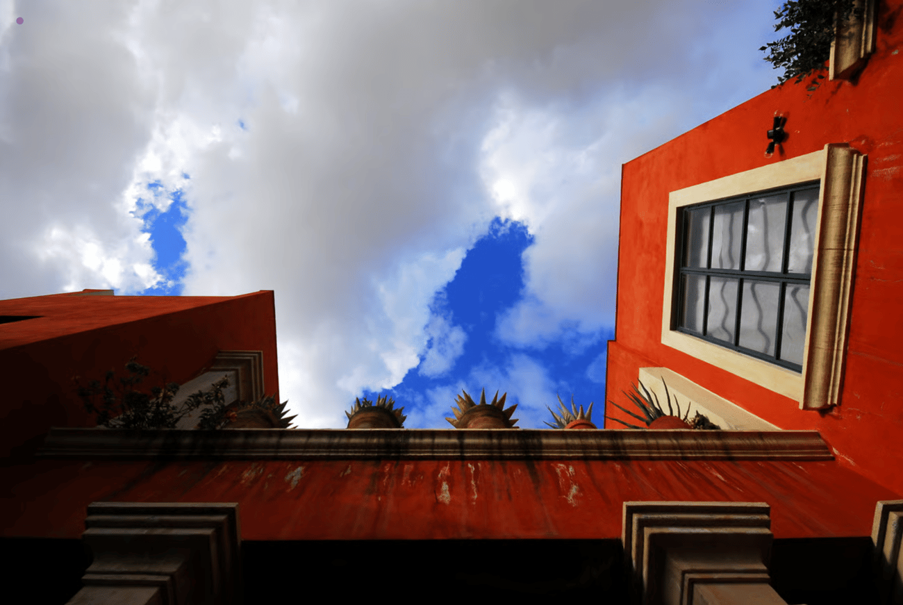 From this angle—looking up—you feel the heartbeat of San Miguel. The deep cobalt sky meets textured walls; light and shadow perform their endless dance. There’s a stillness here that holds you, a kind of reverence built into arches, into wrought-iron balconies, into the way the bougainvillea brushes its fingers across the façade.