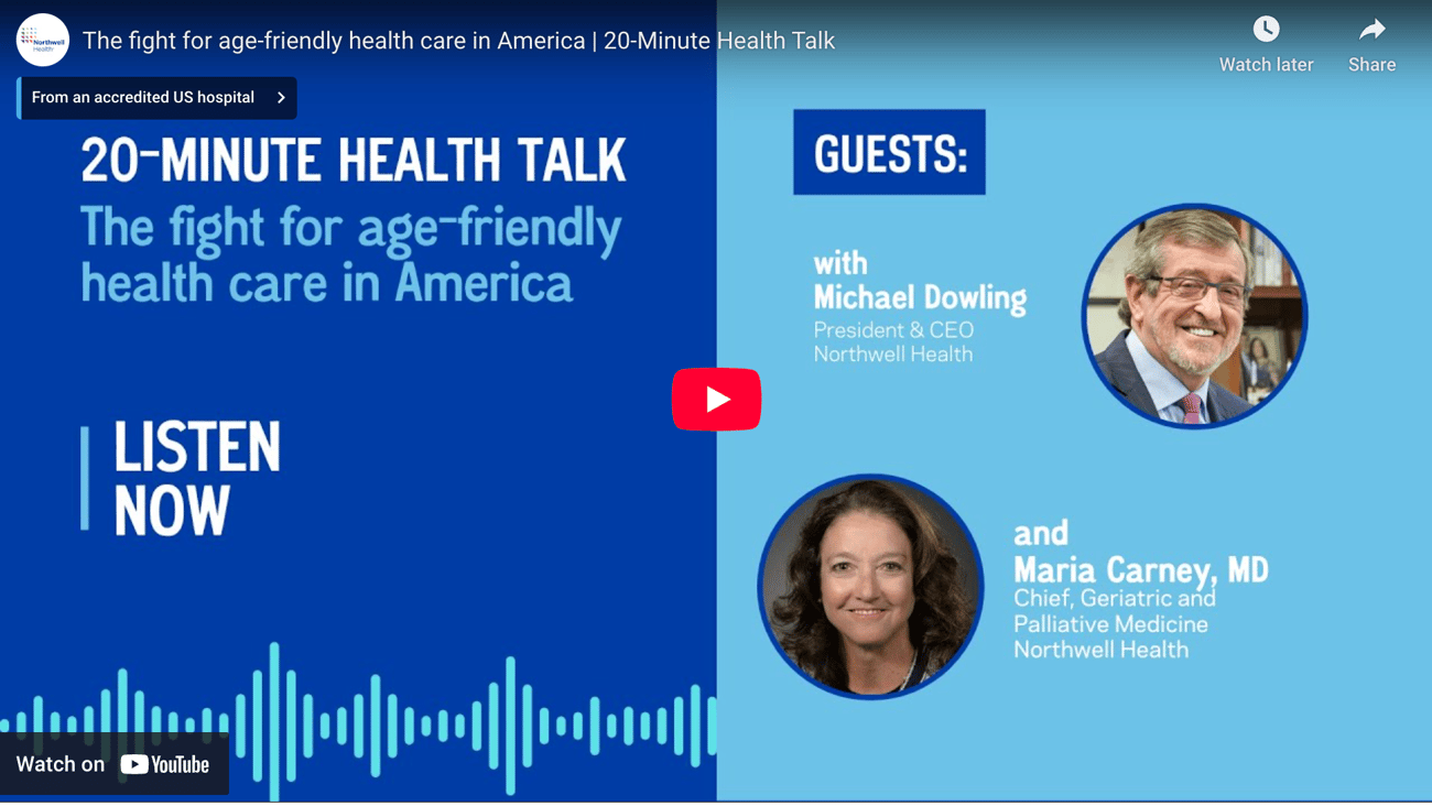 Highlights:0:05 – Michael Dowling emphasizes the importance of preparing for aging as the population of older adults continues to grow.2:28 – The conversation begins with Michael Dowling and Dr. Maria Carney discussing the topic of aging.6:27 – Dr. Maria Carney shares her inspiration for being a part of the book on geriatric healthcare.7:54 – Michael Dowling discusses the role of Robert Butler in creating the field of geriatric medicine.9:28 – Dr. Maria Carney shares a story highlighting ageism in healthcare and the importance of looking beyond age.10:12 – Michael Dowling expresses his vision for Northwell to be a model of an age-friendly health system.11:56 – Dr. Maria Carney explains the specialty of geriatric medicine and the fellowship program required after internal medicine or family medicine residency.12:47 – The fellowship of geriatric medicine covers various aspects of care for older adults and exposes professionals to different care models.14:05 – Michael Dowling emphasizes the importance of continuing education and communication in understanding aging and healthcare needs.15:02 – By 2034, there will be more people over 65 than young people, posing challenges in healthcare and economics globally.16:39 – Dr. Maria Carney discusses the unique focus of the book on healthcare accomplishments and individuals who have revolutionized care for older adults.17:06 – Sandra Lindsay highlights the opposition faced by pioneers in geriatric medicine and the importance of their work.18:09 – Dr. Maria Carney explains the impact of Medicare Advantage policies on healthcare delivery and quality of care for older adults.19:27 – Michael Dowling encourages support for