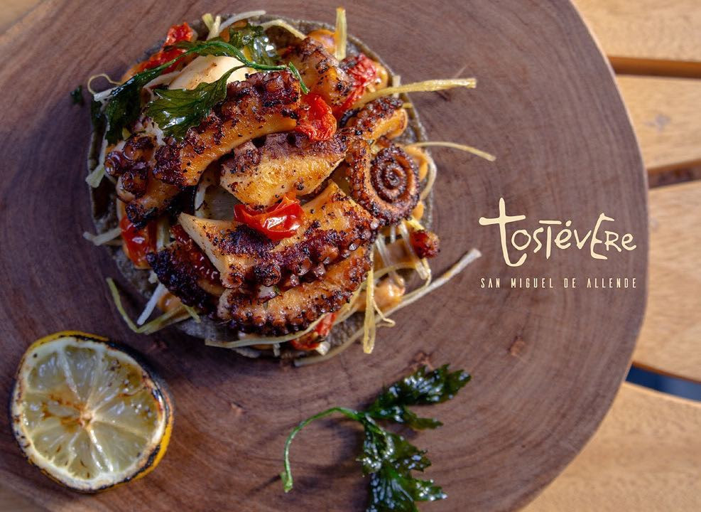Roams AboutOpenTable. Cuisine: Creative, eclectic fusion rooted in Mexican flavors, blending contemporary Mediterranean and European influences. Menu praises quality ingredients, thoughtful preparation, and balanced portions OpenTable+1sanmiguelrestaurants.com+1. Signature Dish: The Truffled Esquites Tostada—a crispy base overflowing with spicy street corn, crowned by truffle-dill cream—is frequently highlighted as a must-try and dream-worthy She Roams About. Starters & Small Plates: Expect inventive small plates such as Roasted Beet Salad, Avocado Tatemado Taco, Soft Shell Crab Wraps, Serrano Ham Pizzetas, and a rotating selection of toastadas like octopus, tuna, short rib, ceviche, and cauliflower She Roams About+1Tastes & Treks+1. Main Courses: Rather than traditional mains, Tostévere emphasizes a curated, small‑plates‑focused menu—crafted for tasting and sharing Instagram+11She Roams About+11OpenTable+11. Desserts: A small but elegant selection: flamed bananas or sautéed figs with housemade ice cream (~MXN 160 each). Or, opt to “drink your dessert” via one of their standout cocktails She Roams