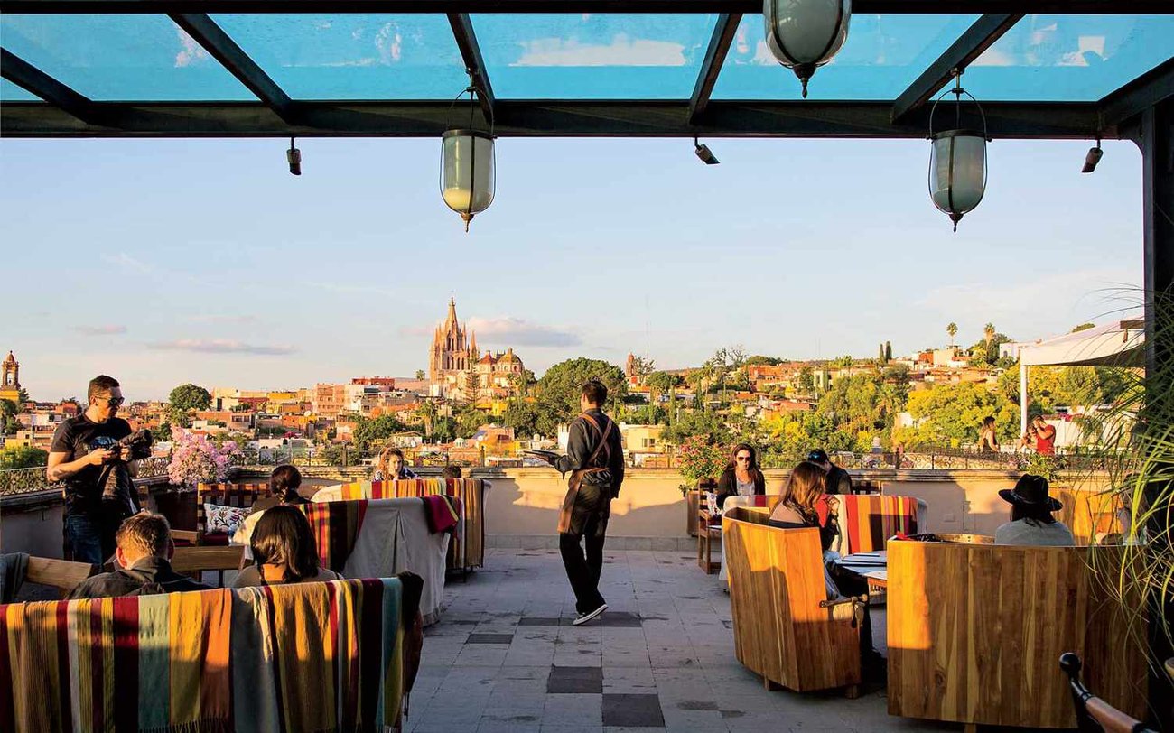 quite simply, one of the most visually stunning spots in all of San Miguel de Allende. Perched atop the Rosewood Hotel, its open-air terrace provides a cinematic view of the city’s colonial rooftops, fiery sunsets, and the majestic Parroquia de San Miguel Arcángel. The design is chic yet warm, with flickering lanterns, colorful textiles draped over wooden chairs, and lush plant accents creating a space that feels both cosmopolitan and deeply rooted in Mexican tradition. It’s ideal for romantic evenings, stylish gatherings, or anyone wanting to soak in the city’s magic from above. Service: Service is polished and attentive, in keeping with Rosewood’s five-star standard. Staff are fluent in both Spanish and English, and effortlessly blend professionalism with the kind of easy-going warmth that defines hospitality in San Miguel. Waiters are knowledgeable about